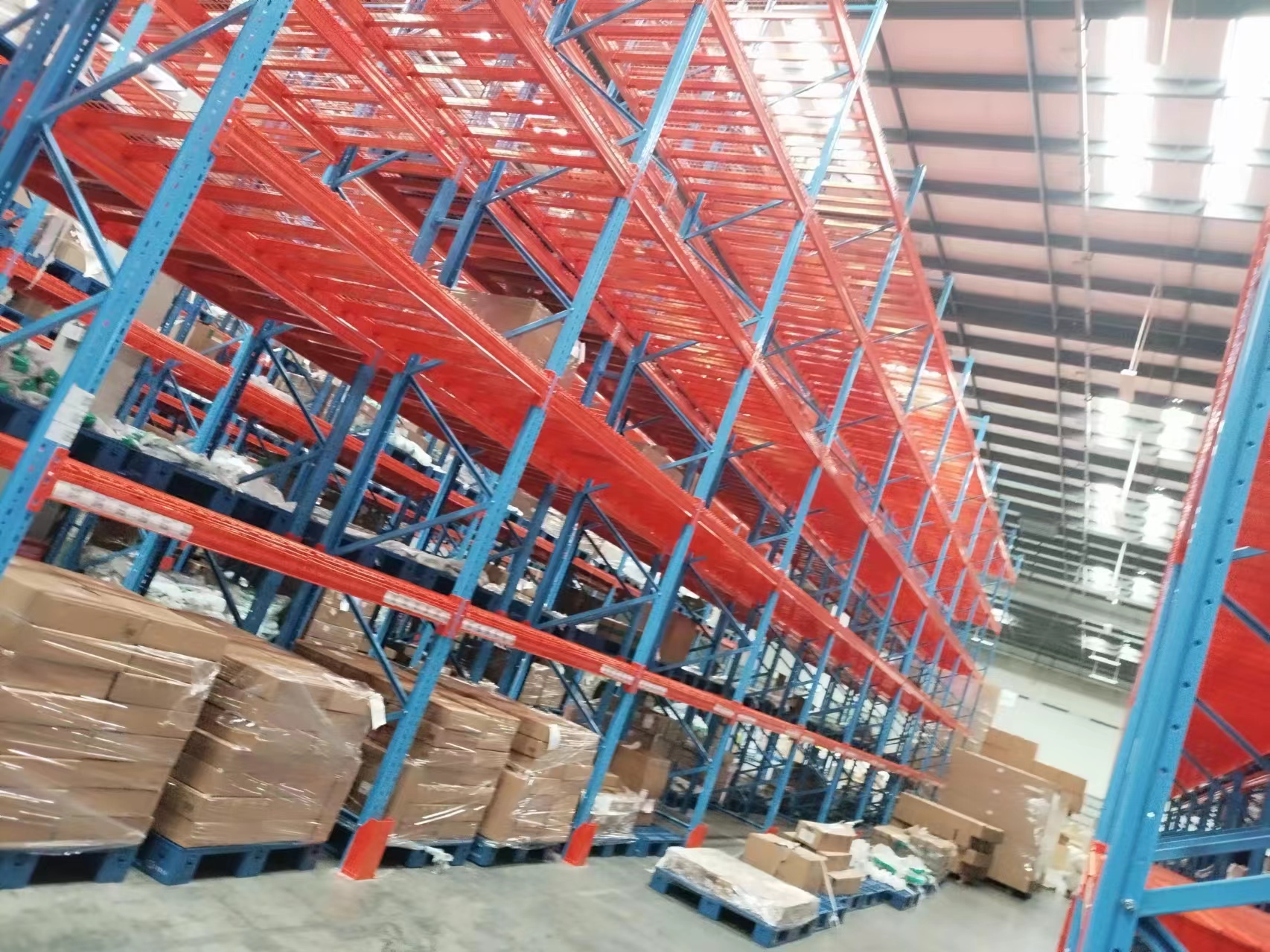 电商 / 快消品行业(高频存?。翰捎?“窄巷道 + 高位横梁货架” 组合,配合电动叉车,提升空间利用率与分拣效率。
